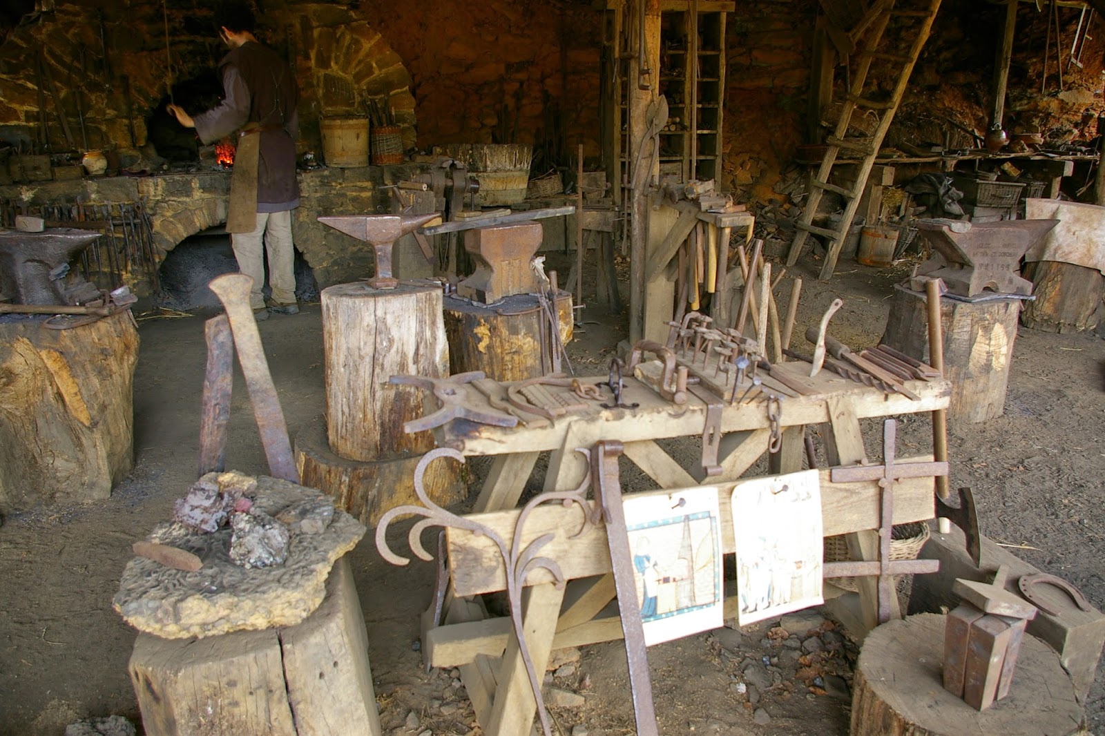 Pour continuer mon exploration du conte de « Pieds-d’or », j’ai eu envie d’aller voir de plus près une forge. Il me fallait trouver une forge digne du conte avec enclumes, soufflets, outils… Et forgeron bien sûr !